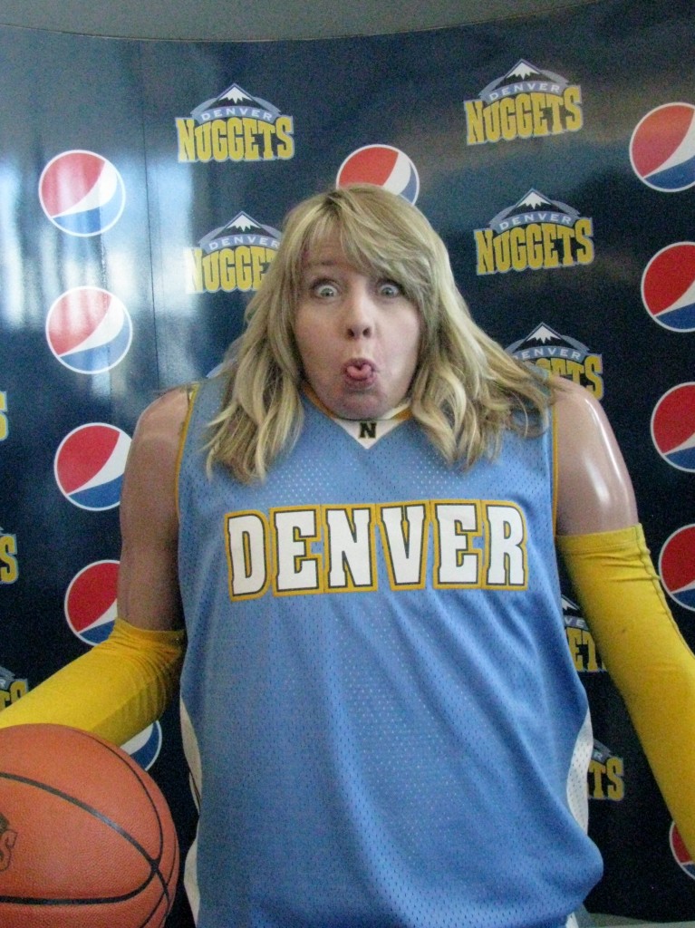 Hmm, me…trying to pose as a Nuggets basketball player. Not working. I did make a few strangers laugh though.