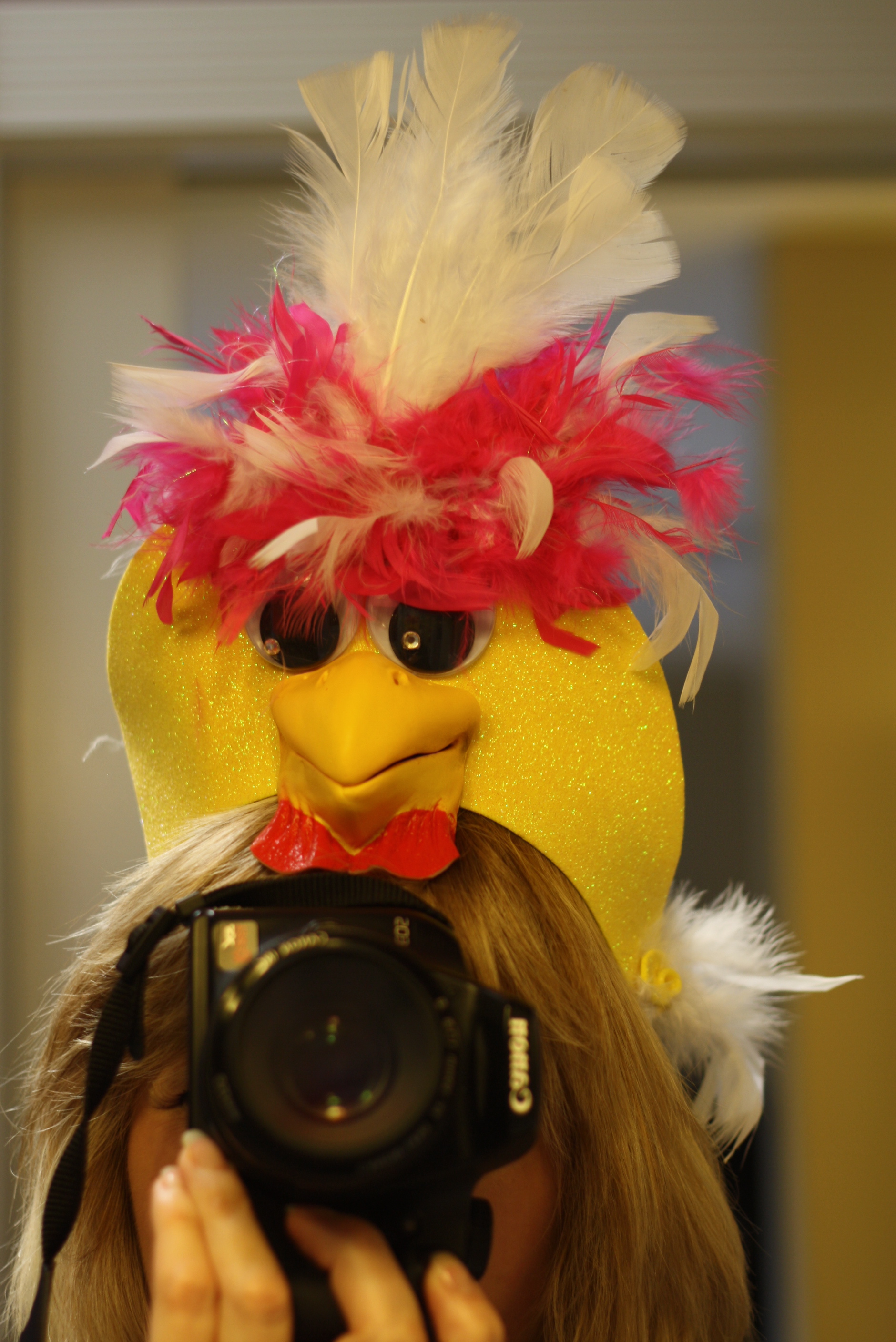 89. The Chicken hat I made and wore during my 5 minute talk last weekend at She Speaks!! 🙂