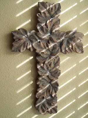 The first thing I do when I wake up is open all my blinds. I see this cross every morning, it hangs right by the wand to open the blinds in my living room near an east facing window. I love to see the morning skies. I love how the sunshine shines brightly and warms this room especially during the cold of winter.