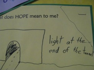 This weekend Hannah had her spring piano recital at a local church. In the hallway was a bulletin board with pictures from kids about what hope means to them. This particular one captured my eye. Wanted to share it to encourage you. I know of many families who are going through dark times right now. This drawing speaks volumes. May you find Continue Reading